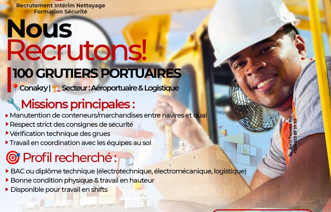Fonction : Opérateur de grue mobile portuaire Type de contrat : CDD/CDI